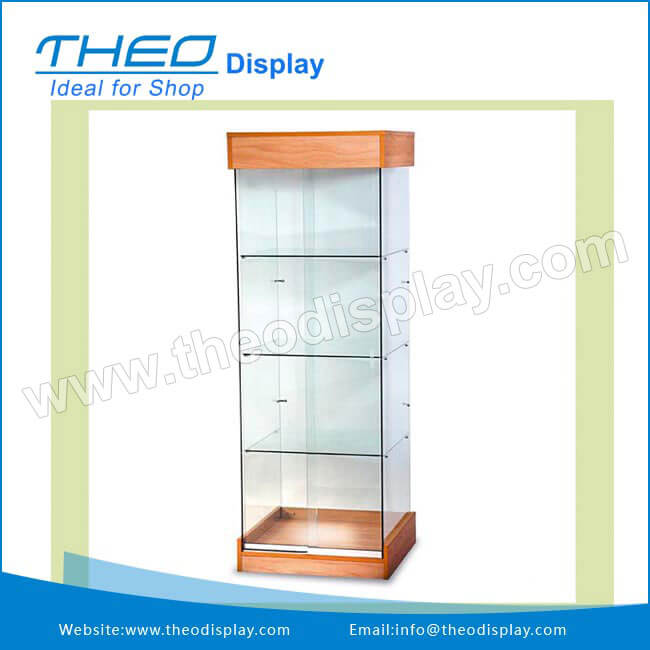 TH-683-Freestanding Wood and Glass Tower Showcase Display Cabinet